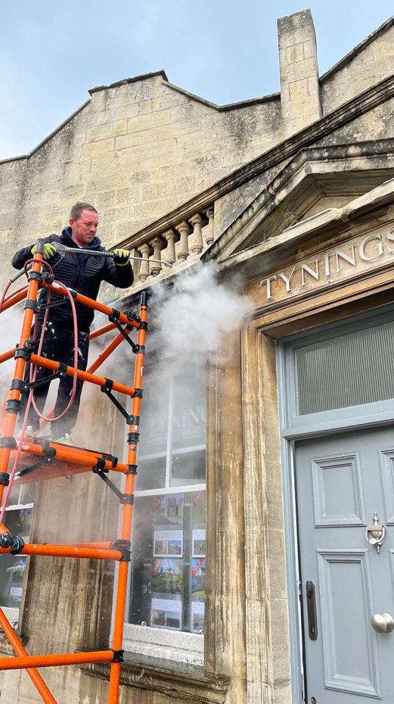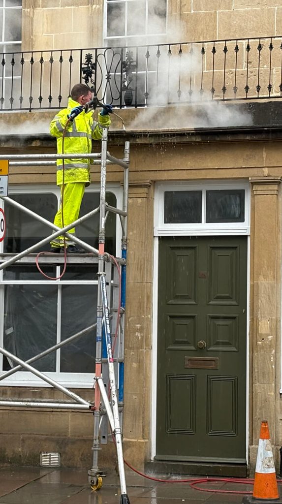We use industry-leading technology to deliver precise, effective and sympathetic cleaning for all types of stonework. We are also equipped to work safely at height, manage water runoff and debris, and ensure compliance with conservation guidelines where necessary – an important consideration in Bath’s protected historic areas.